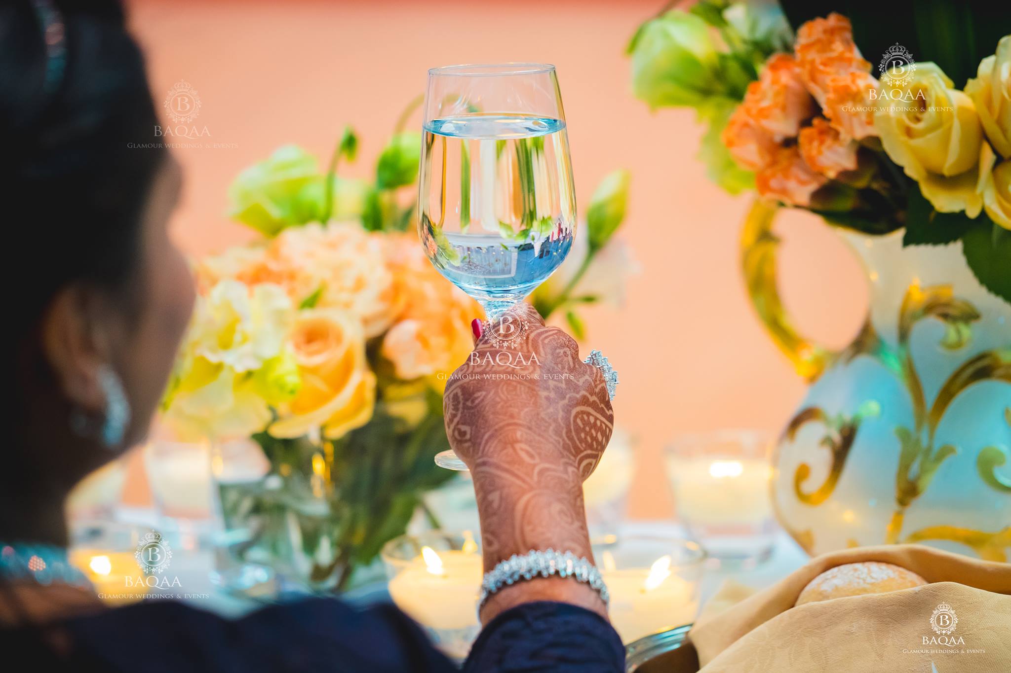 Niakh ceremony and the Nikah Lunch – Pristine and pure in every sense of the word. An early morning Nikah on the beach followed by the beautiful Nikah lunch under a white customized marquee on a sunlight terrace, overlooking the Saadiyat turquoise blue waters, built some lifetime memories for the families and the guests.